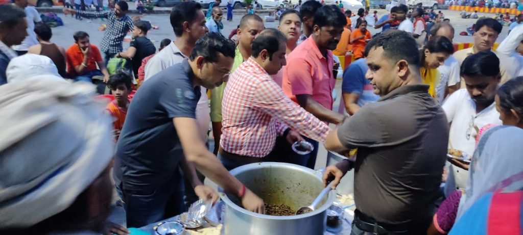 काशी व्यापार मंडल कैंट के पदाधिकारियों ने वाराणसी कैंट रेलवे स्टेशन के बाहर किया बाबा विश्वनाथ के महा प्रसाद का वितरण