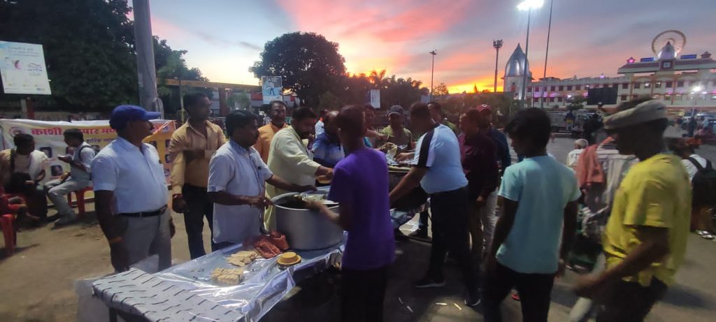 वाराणसी व्यापार मंडल कैंट के पदाधिकारियों ने वाराणसी कैंट रेलवे स्टेशन के बाहर किया बाबा विश्वनाथ के महा प्रसाद का वितरण