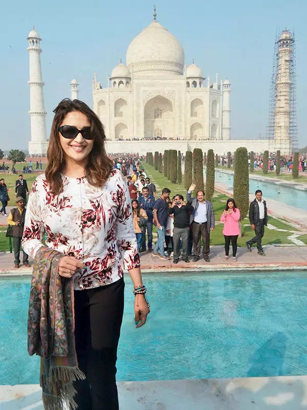 आपको बता दे साल 2017 में माधुरी दीक्षित अपने पूरे फॅमिली के साथ ताज महल का दीदार करने पहुंची थी और अपने फॅमिली के साथ वे उस समय को बेहद ही अच्छे से एन्जॉय भी कर रही थी पर जब वे वहां गयी थी उस समय तो उन्हें किसी ने नहीं पहचाना पर कुछ समय के बाद उनके एक दो फैन ने उन्हें पहचान लिया और इसके बाद धीरे धीरे उनके आसपास भीड़ इकठ्ठा होने लगी और फैन्स उन्हें चरों तरफ से घेर लिए और उनके साथ सेल्फी और ऑटोग्राफ लेने के लिए उन्हें पूरी तरह से घेर लिया |