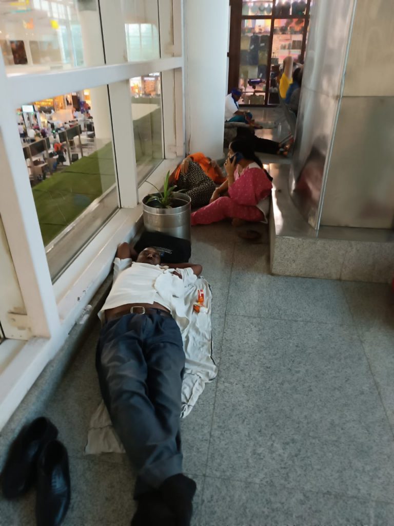 वाराणसी एयरपोर्ट परयात्री फर्श पर लेटे, जानें क्या है कारण ?
